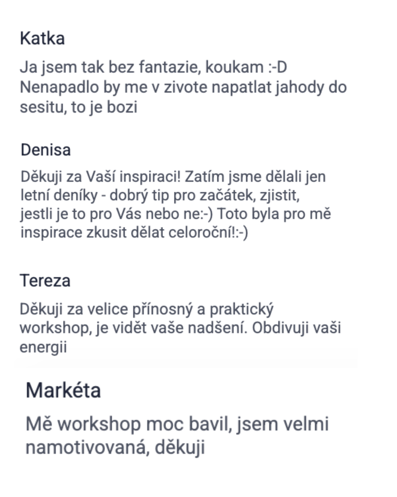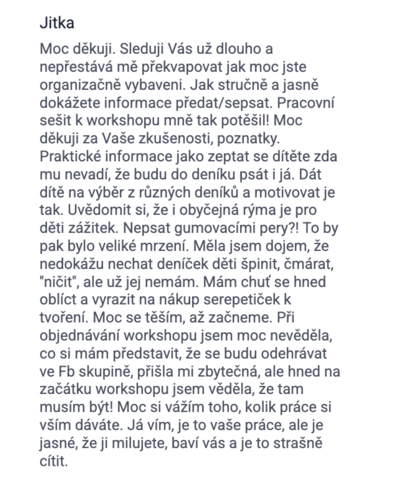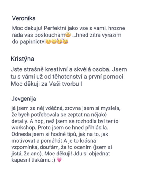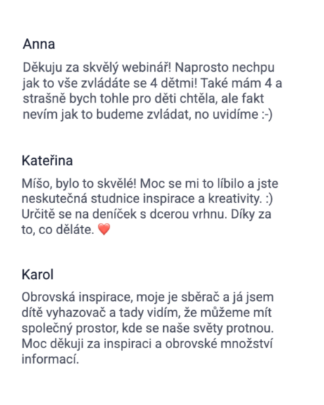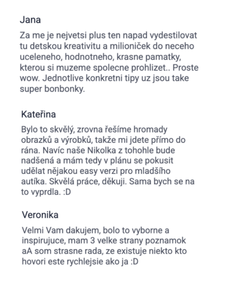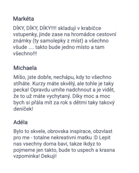 - Získáte přístup do Facebookové skupiny, kde budeme celý rok společně. Motivace, podpora, nápady.