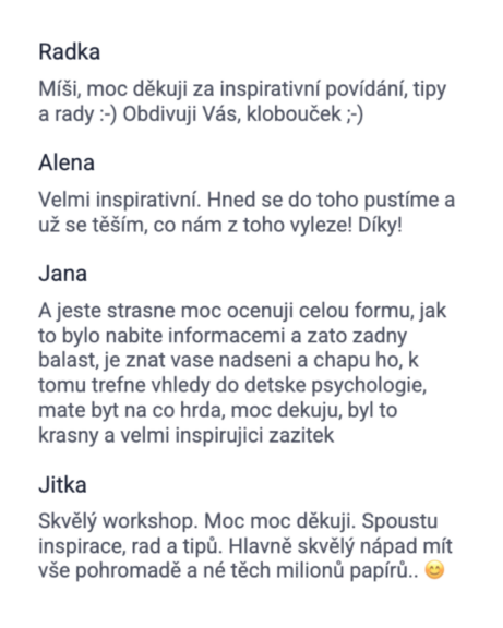 - Největší odměna přijde na konci roku. Až uvidíte, co si děti vytvořily a co jim vy uchováte! Napořád.